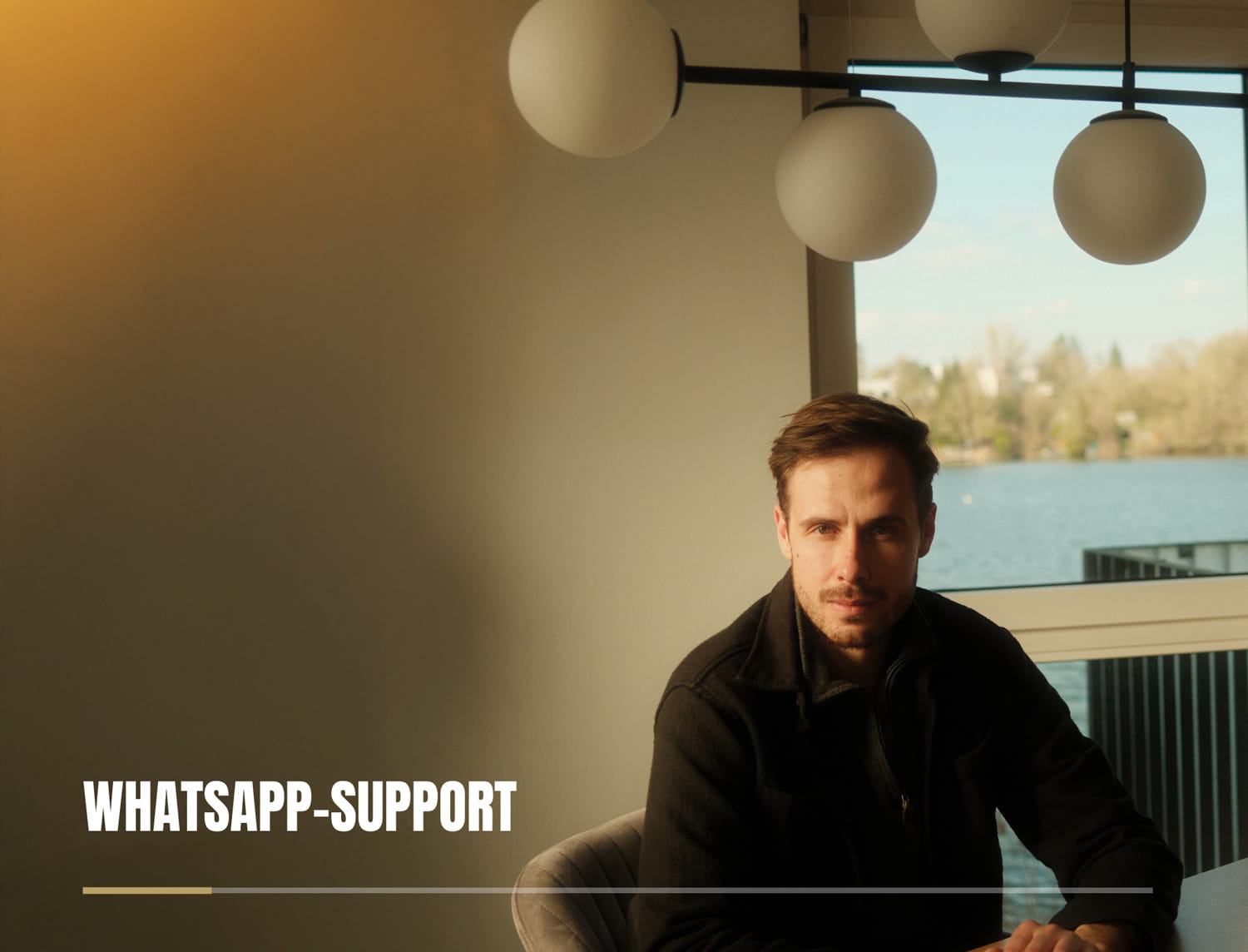 Neben den wöchentlichen Meetings hast du jederzeit Zugang zu unserer WhatsApp Begleitung. So bekommst du direkte Unterstützung, wenn Fragen auftauchen oder du vor wichtigen Entscheidungen in deinem Business stehst.